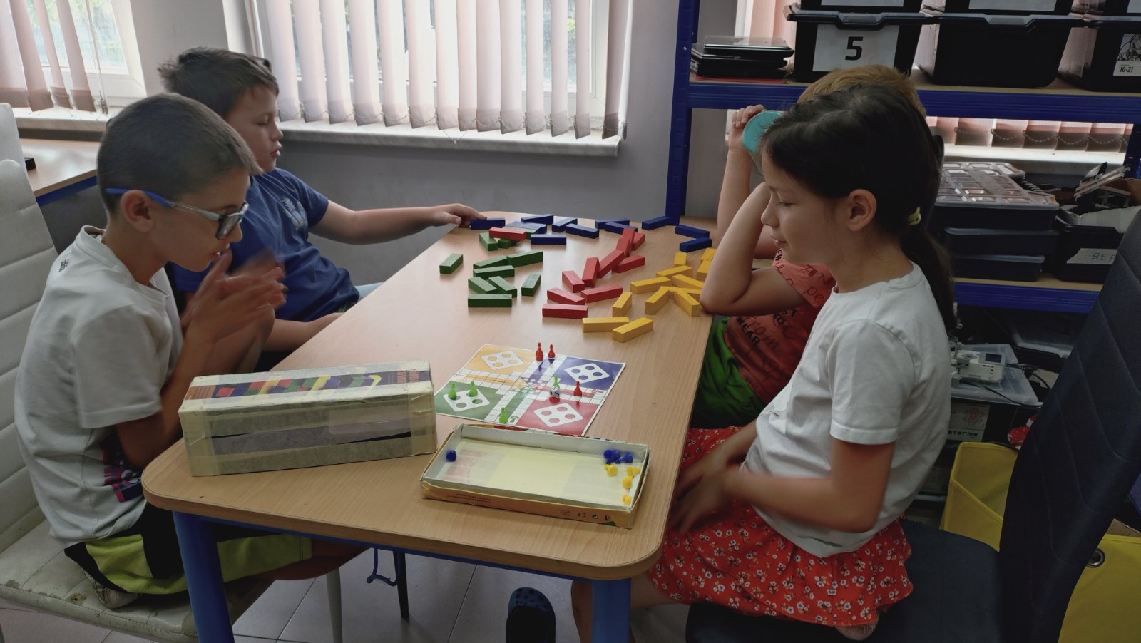 Децата могат закусват, да играят настолни или други игри.